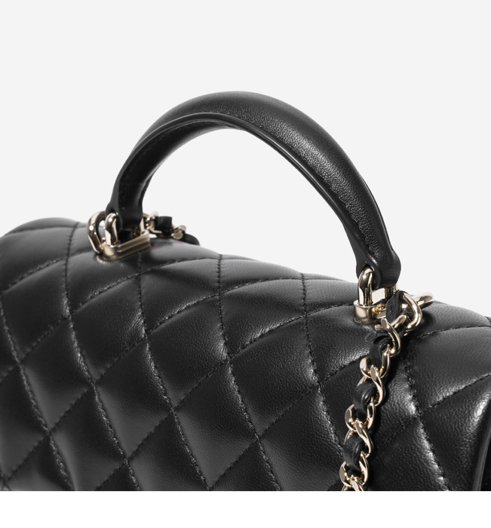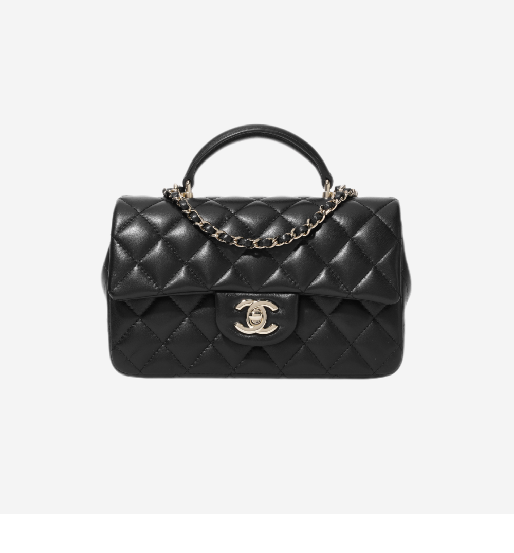 Chanel Mini Flap Bag with Top Handle Lambskin & Gold Black