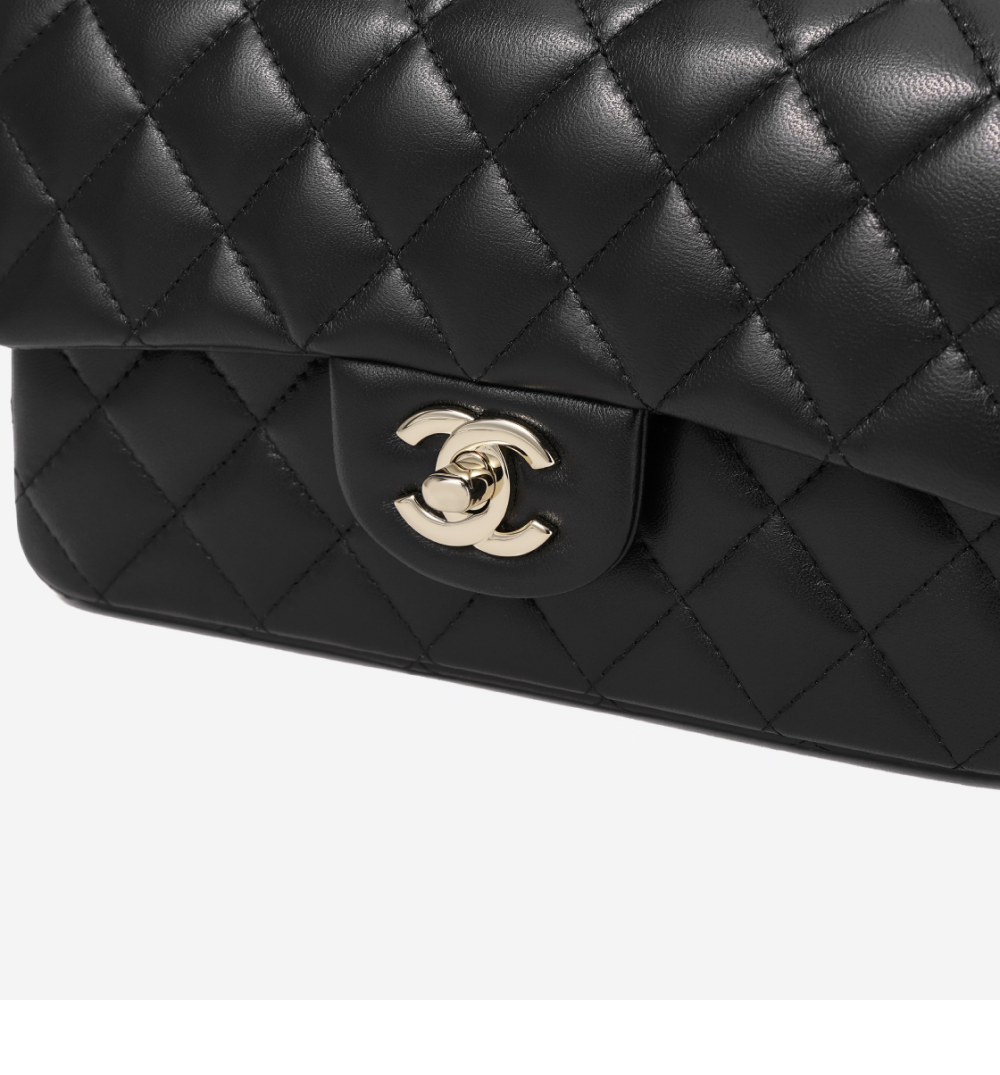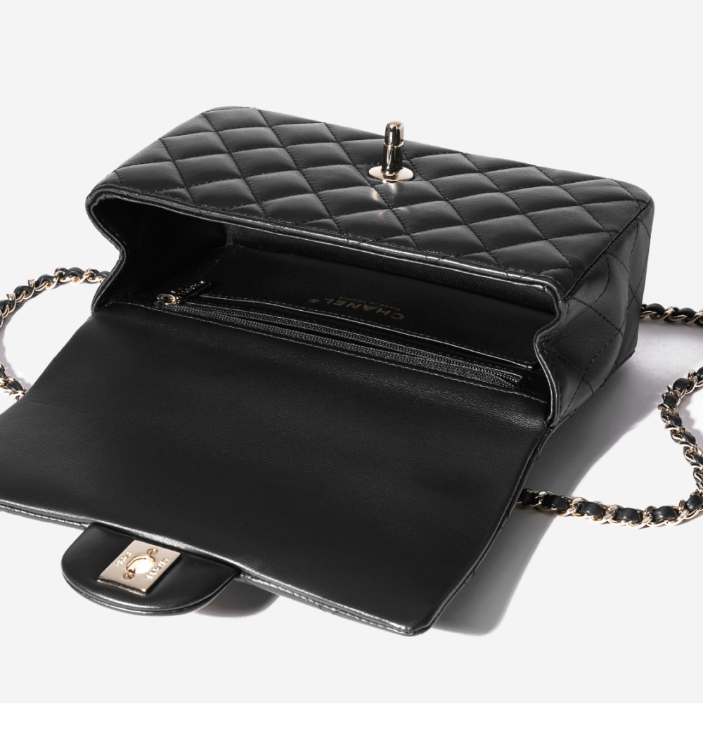 샤넬 핸들 장식의 미니 플랩백 램스킨 & 골드 메탈 블랙