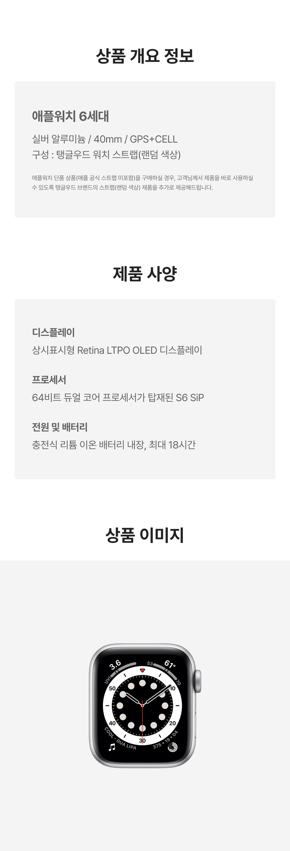 [B등급] 리퍼비시 애플워치 6 40mm 셀룰러 실버 알루미늄 케이스