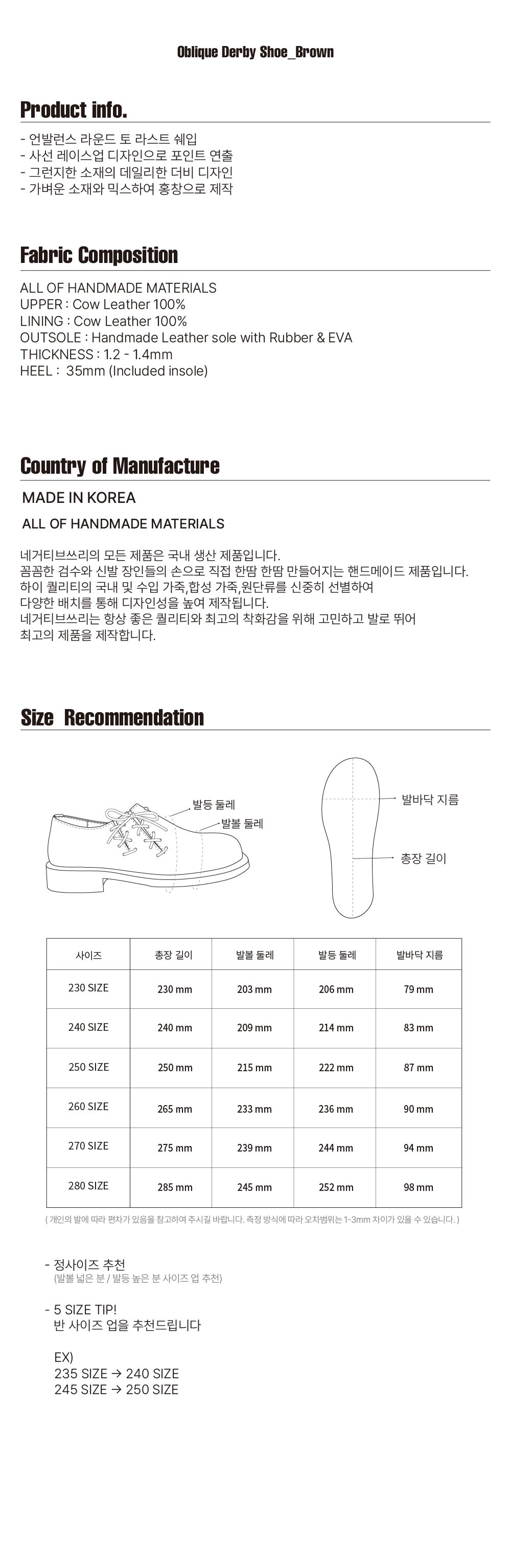 네거티브쓰리 오블리크 더비 슈즈 다크브라운