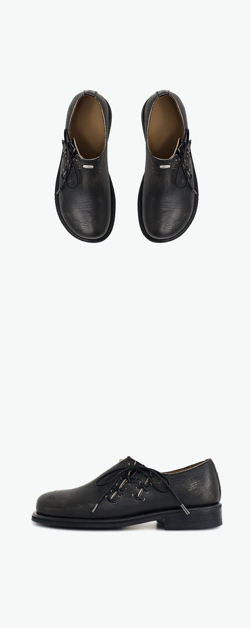 네거티브쓰리 오블리크 더비슈즈 블랙 베이지