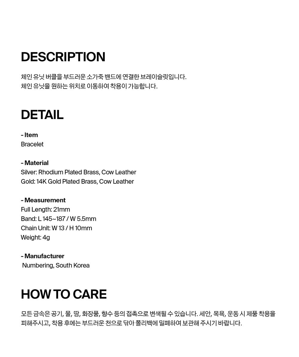 넘버링 #5949 체인 유닛 버클 레더 브레이슬릿