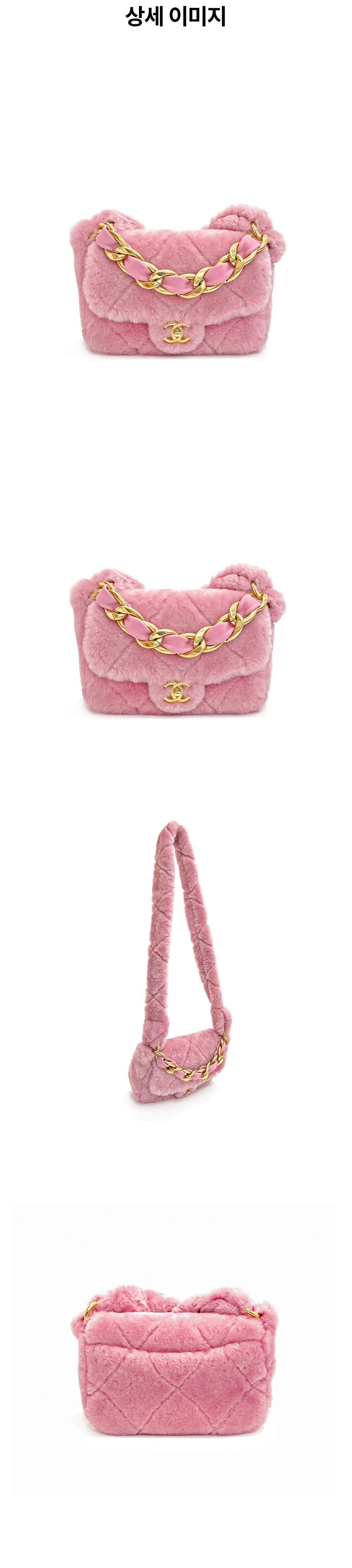 샤넬 시어링 체인 플랩백 핑크 금장