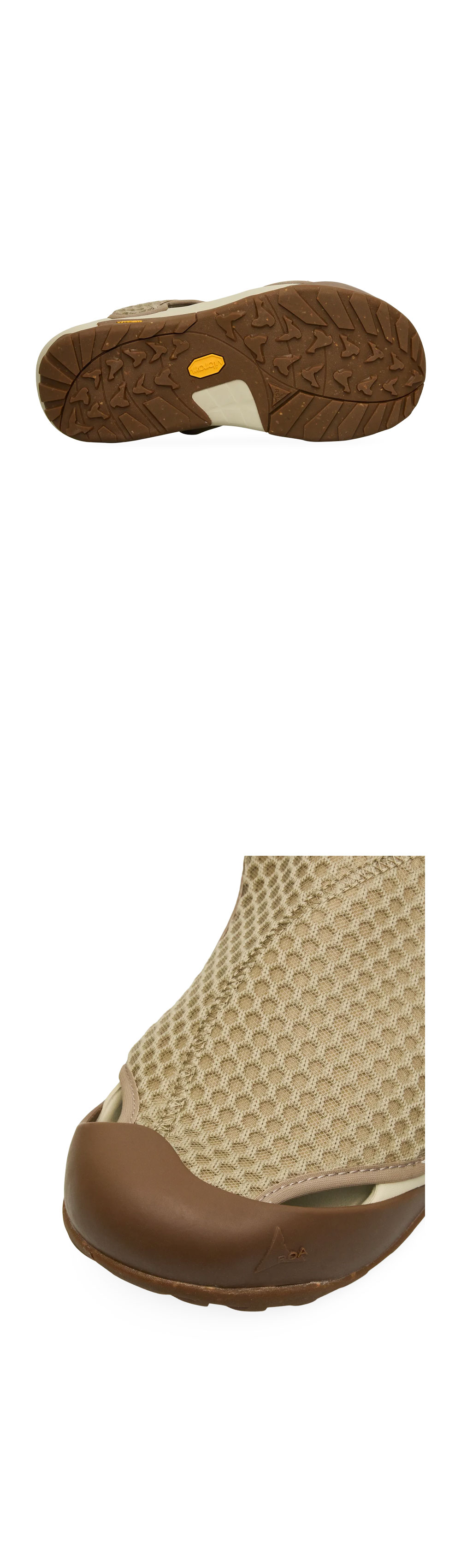 유니크한 디자인과 통기성을 자랑하는 로아의 아르피 샌들입니다. - 통기성을 위한 메쉬 소재 - 미끄러움을 방지하는 Vibram® Ecostep 밑창 - 안쪽에 숨겨진 벨크로 잠금 장치