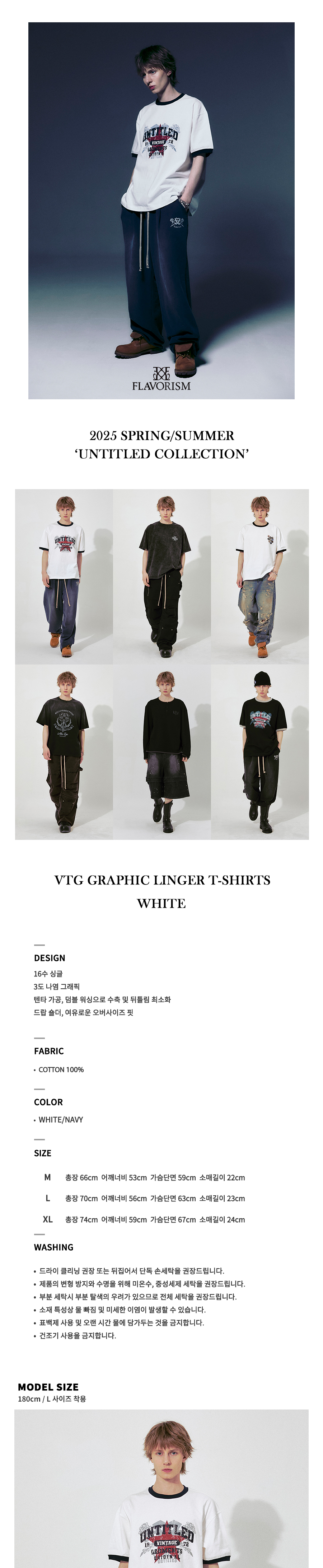 플레이버리즘 빈티지 그래픽 링거 티셔츠 화이트