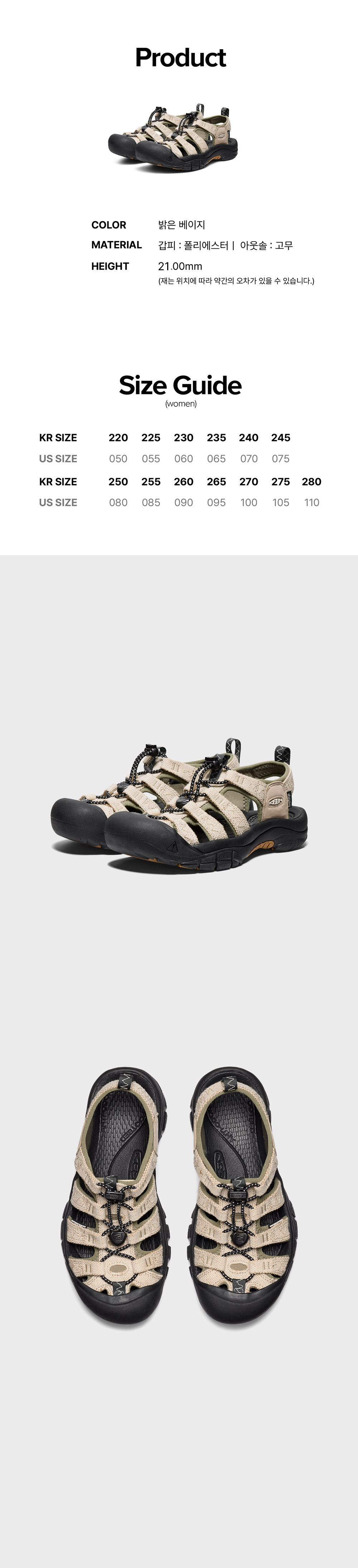 킨X그라미치 뉴포트 레트로 여성 샌들 밝은베이지