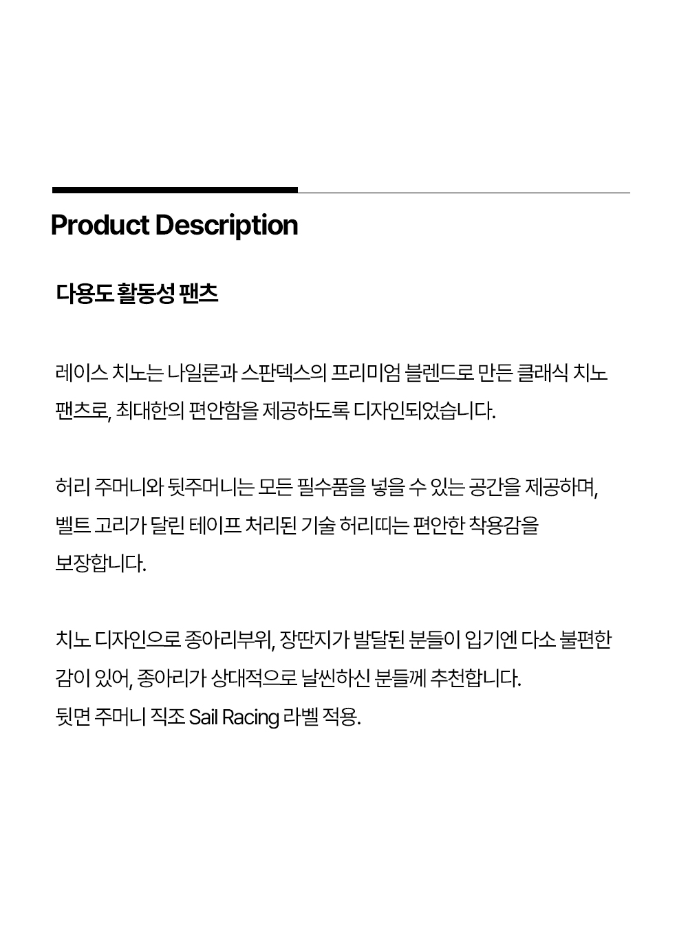 세일레이싱 레이스 치노 팬츠 999
