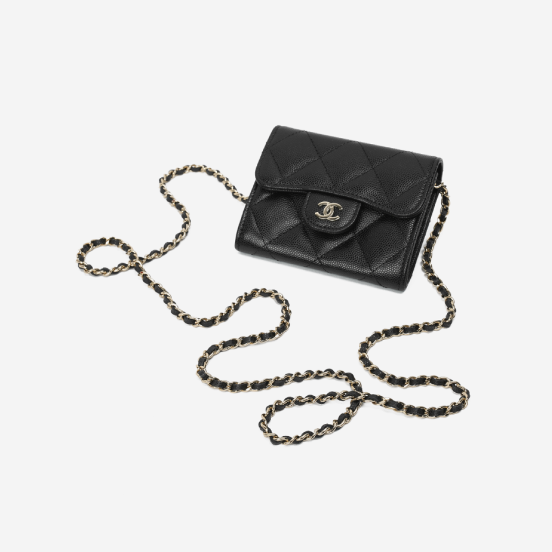 샤넬 클래식 체인 미니백 그레인드 카프스킨 & 골드 메탈 블랙