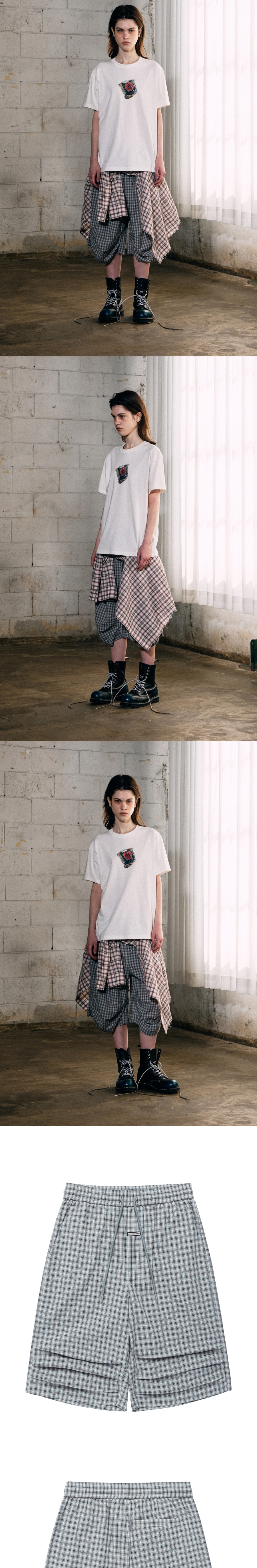 더바이닐하우스 3 쿼터 체크 팬츠 블루