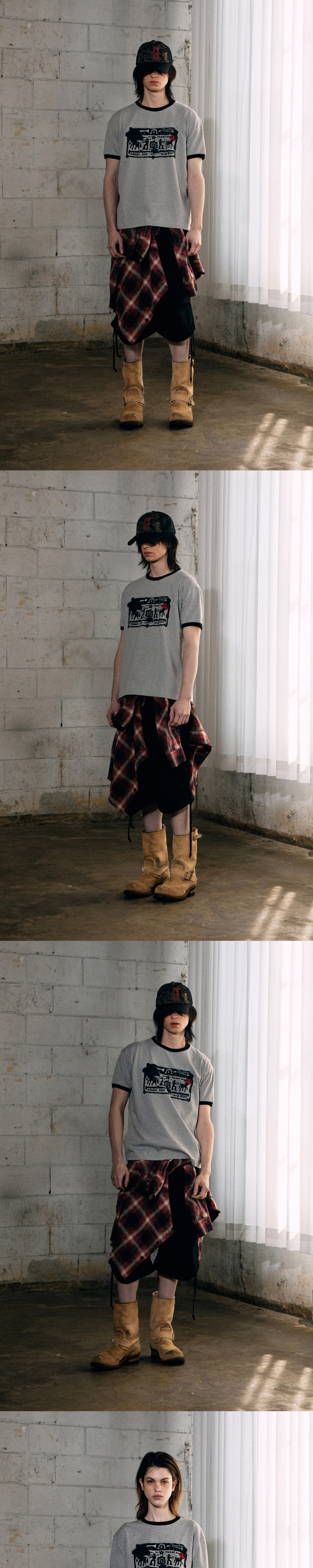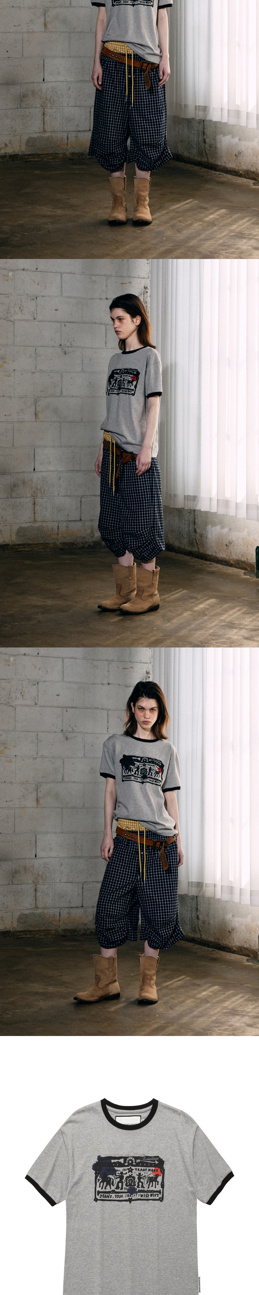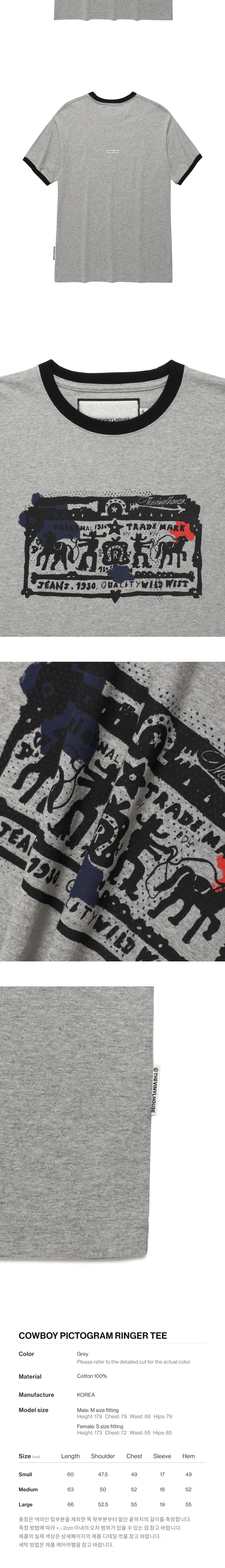 더바이닐하우스 카우보이 픽토그램 링거 티셔츠 그레이