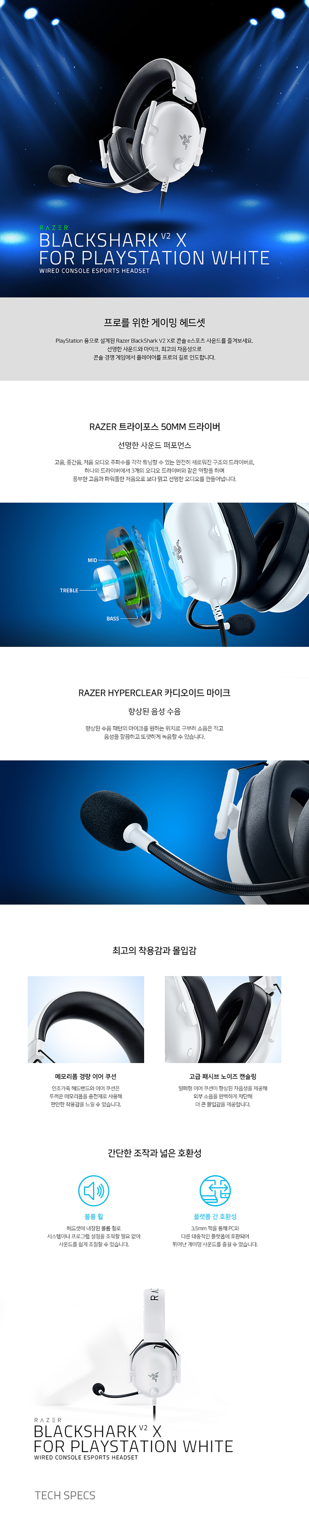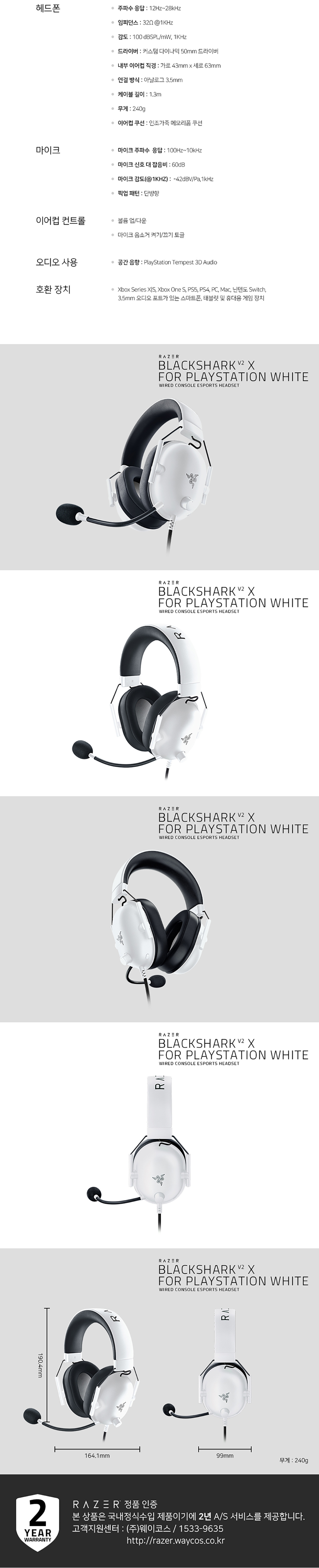 레이저 블랙샤크 V2 X PS5공식라이센스 PC호환 게이밍 헤드셋 화이트