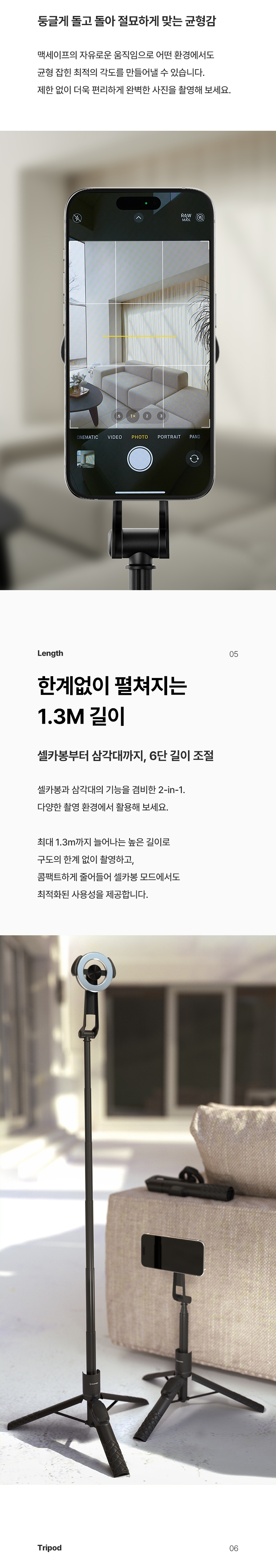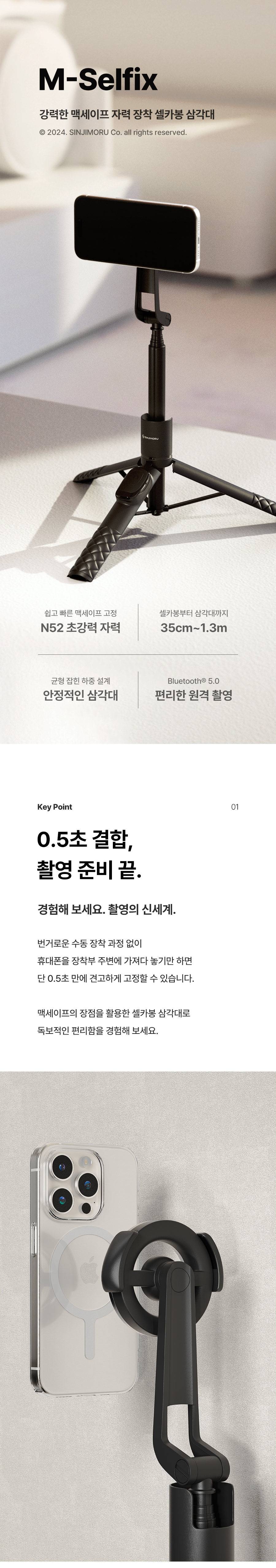 신지모루 6단 맥세이프 삼각대 블루투스 셀카봉