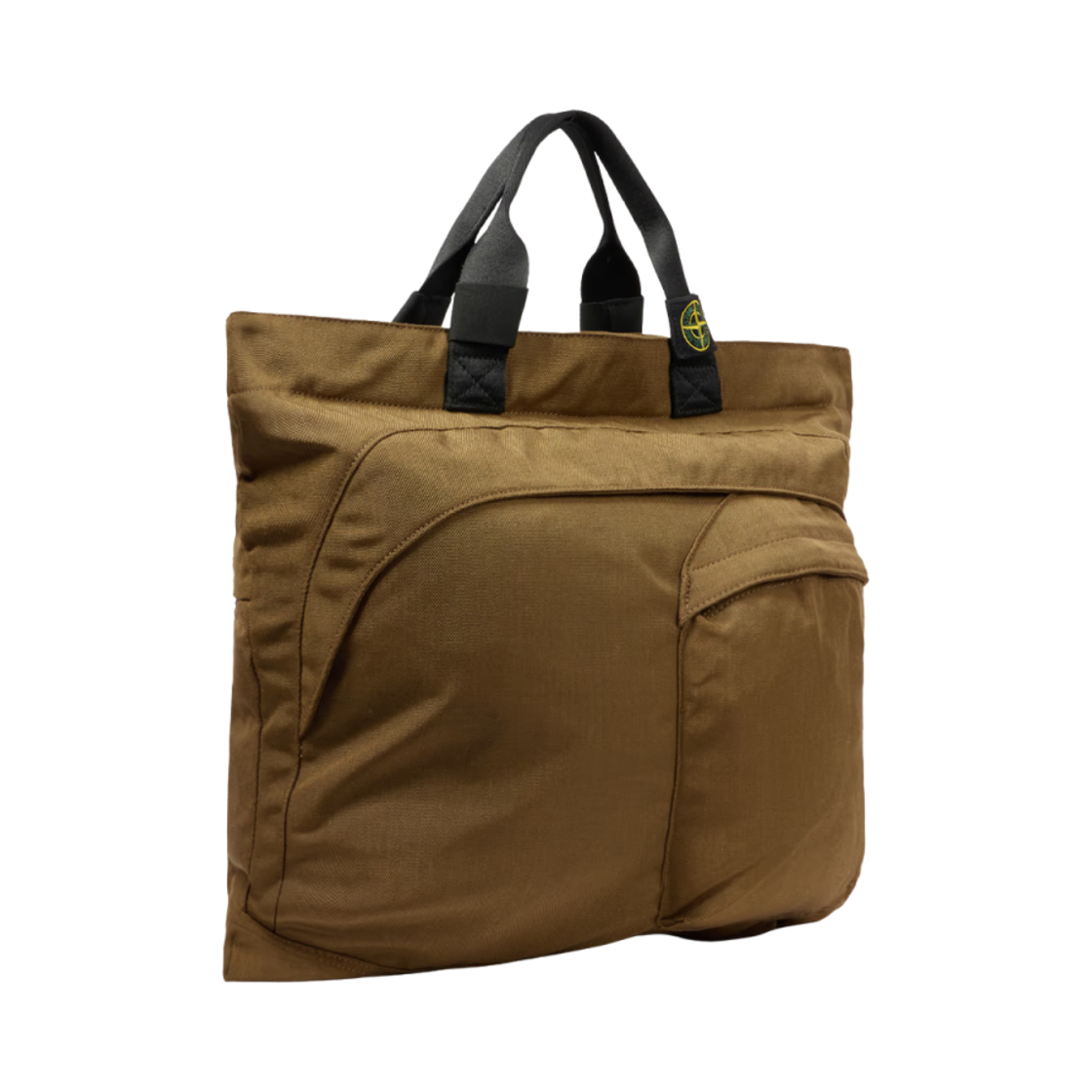 스톤 아일랜드 9200015 레진 트리티드 코듀라 1500 토트백 멀티플 포켓 앤 숄더 스트랩 다크 베이지 - 25SS