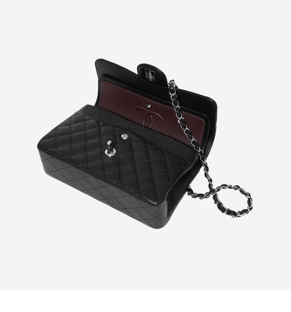 샤넬 클래식 스몰 플랩백 그레인드 카프스킨 & 실버 메탈 블랙