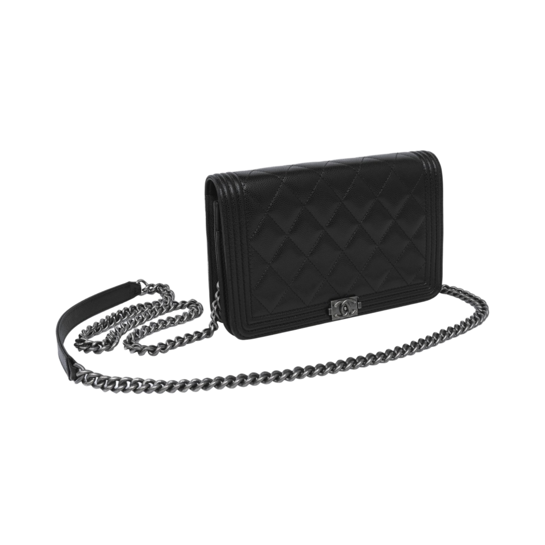샤넬 보이 샤넬 체인 지갑 그레인드 카프스킨 & 루테늄 메탈 블랙