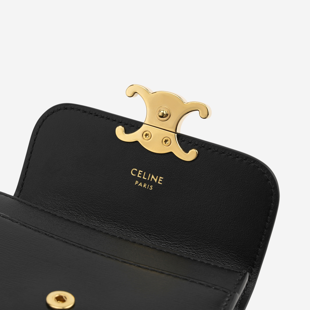 셀린느 샤이니 카프스킨 플랩 카드 홀더 블랙