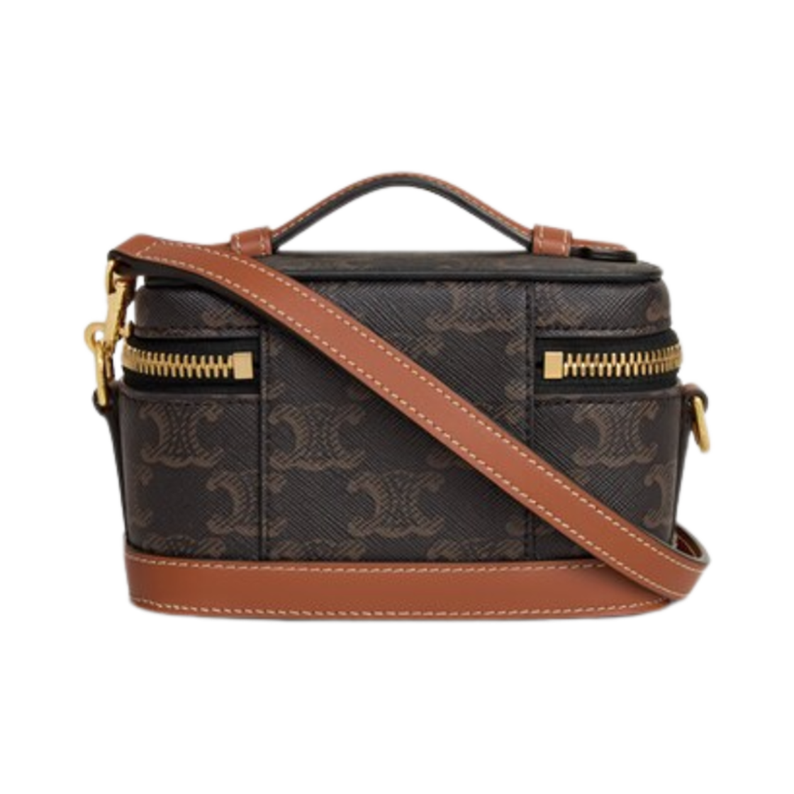 Celine Mini Vanity Bag in Triomphe Canvas and Calfskin Tan