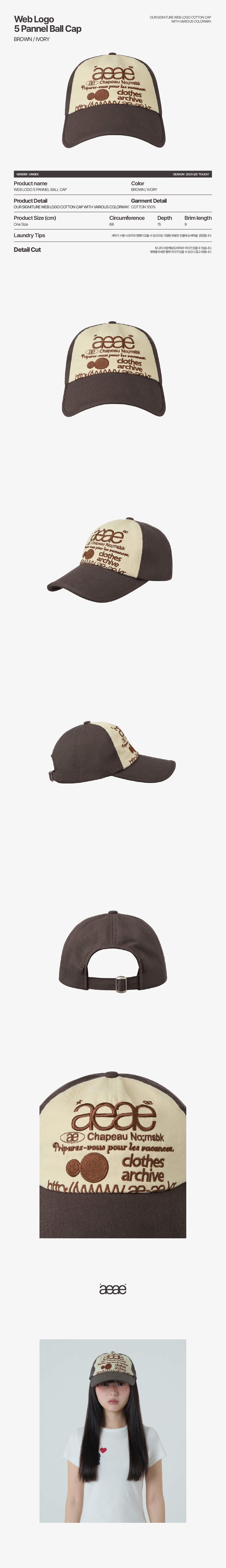 에이이에이이 웹 로고 5 패널 볼캡 브라운 & 아이보리