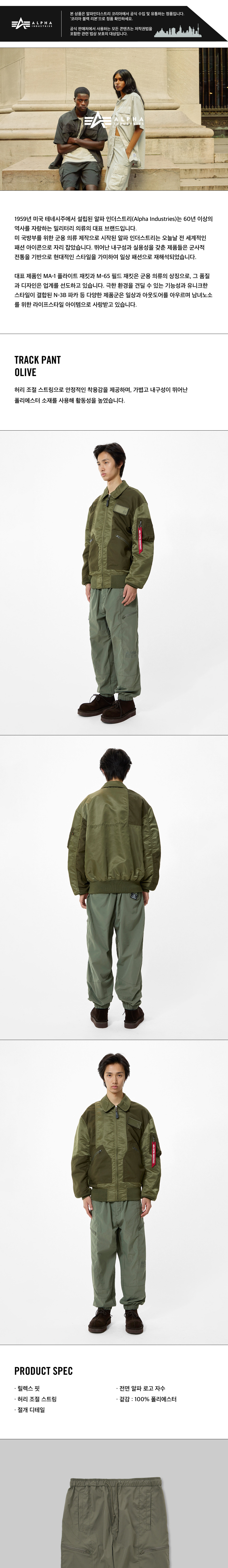 알파 인더스트리 트랙 팬츠 올리브