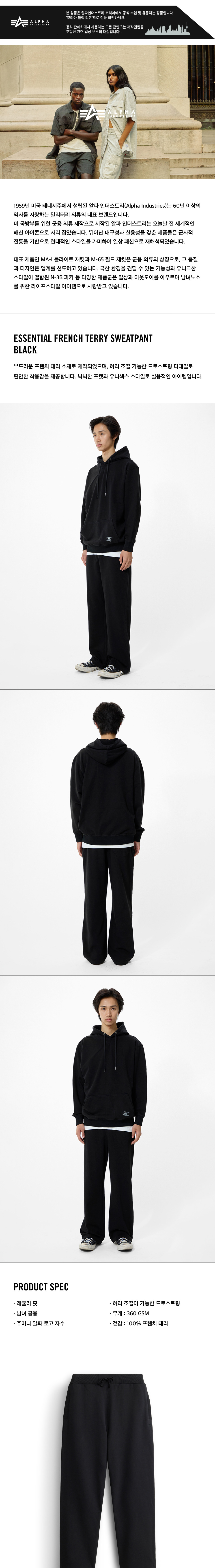 알파 인더스트리 에센셜 프렌치 테리 스웨트팬츠 블랙