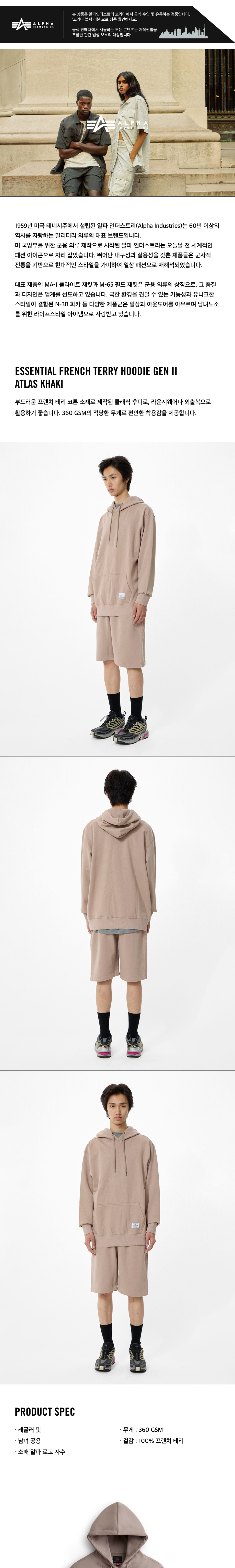 알파 인더스트리 에센셜 프렌치 테리 후디 Gen II 아틀라스 카키