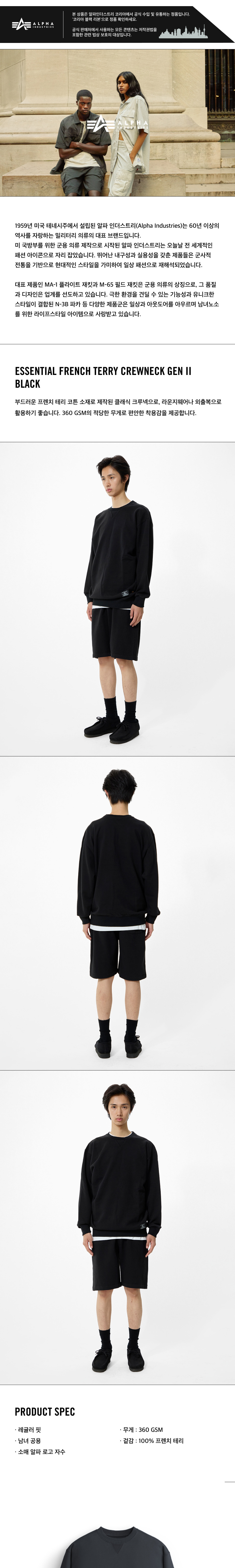 알파 인더스트리 에센셜 프렌치 테리 크루넥 Gen II 블랙