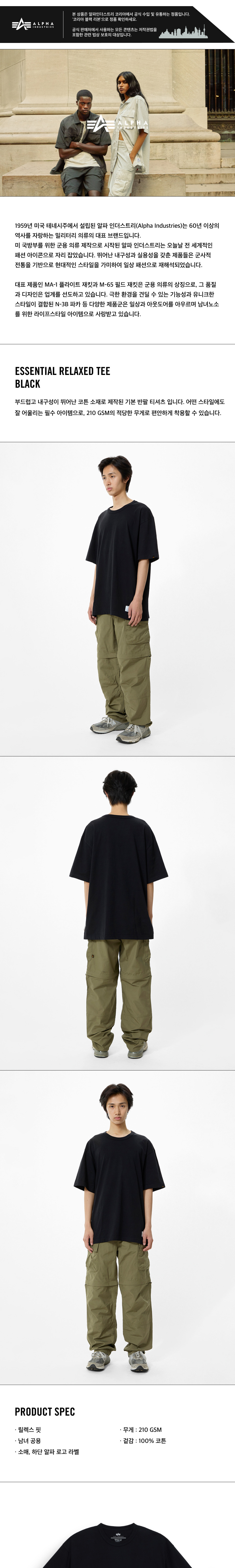알파 인더스트리 에센셜 릴랙스드 티셔츠 블랙