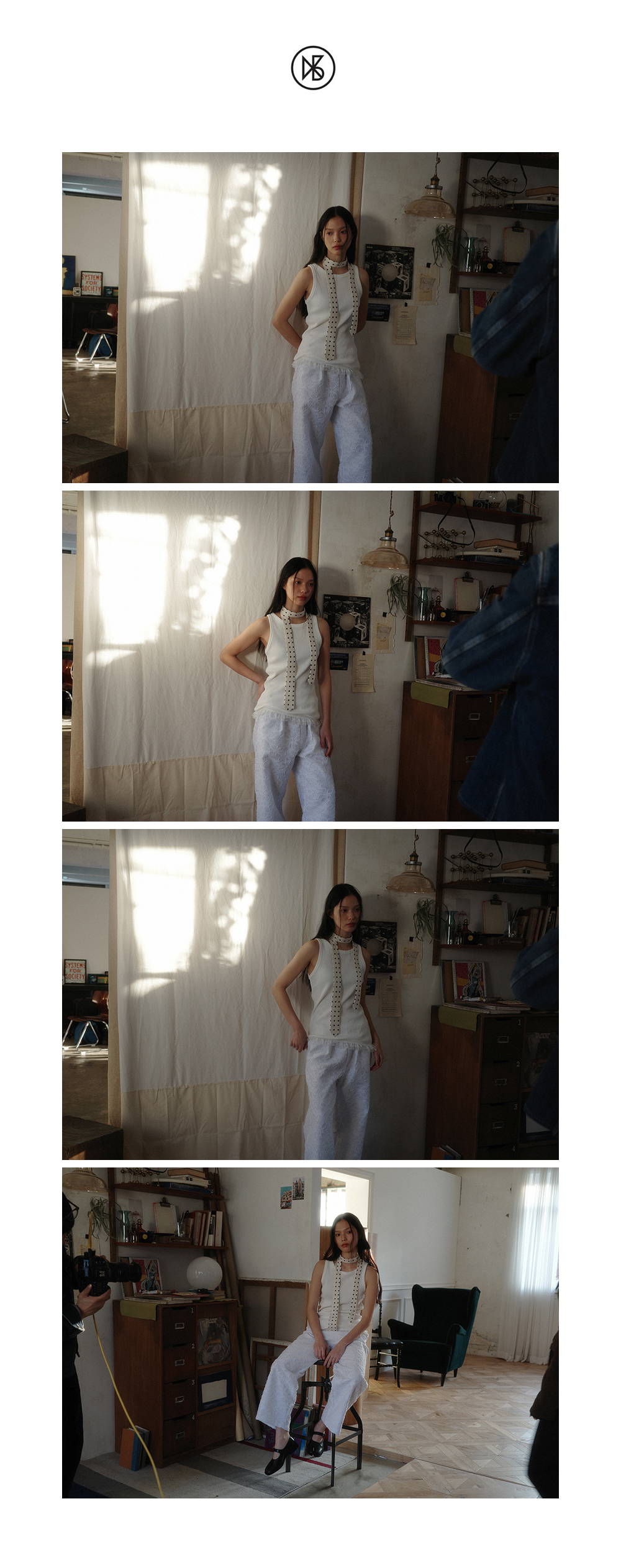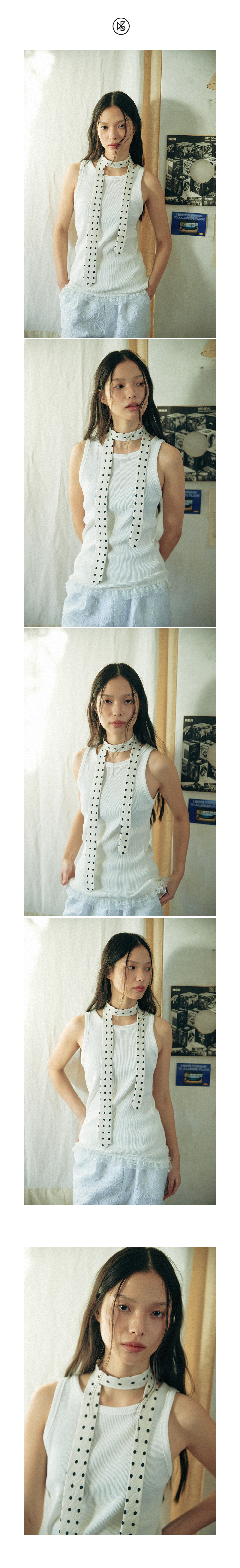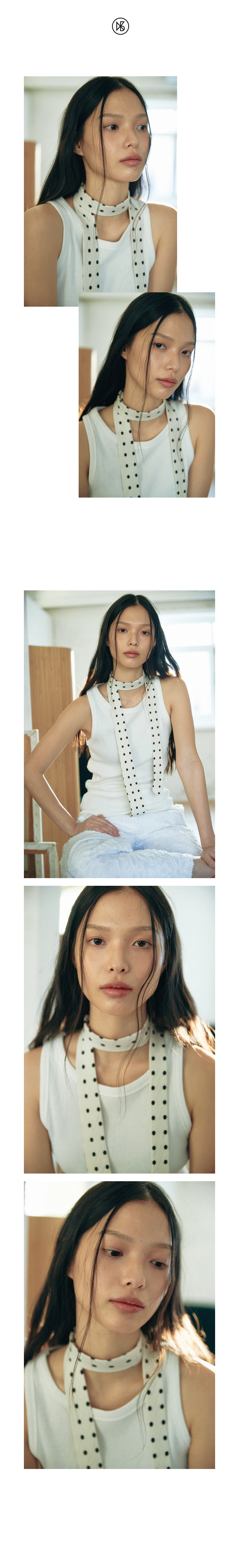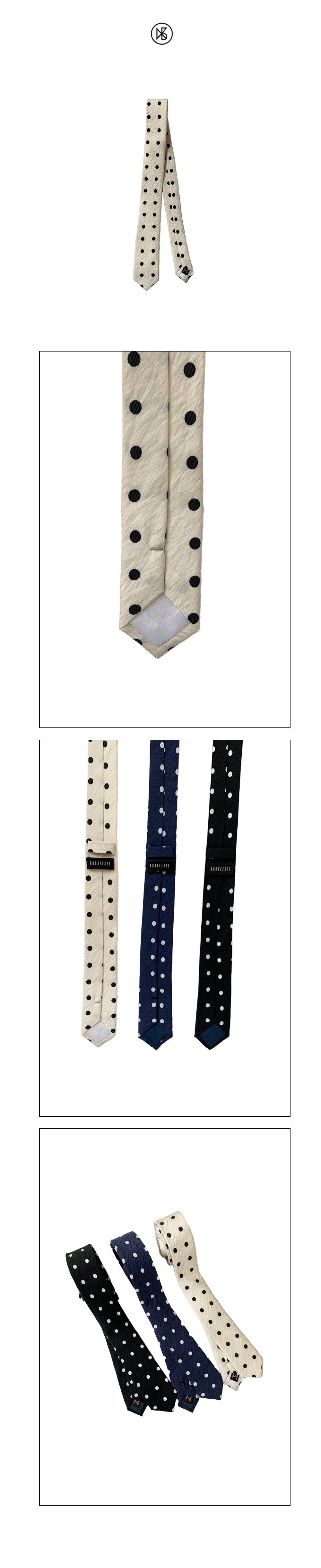 쿠키시 도트패턴의 슬림 넥타이 아이보리