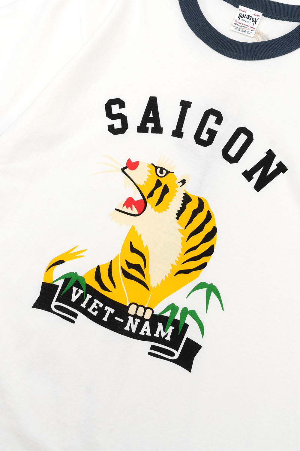 Houston Japan 22304 Ringer Tee (TIGER) - Navy 베이직한 핏감과 푹신한 감촉의 링거 T셔츠입니다. 앞판에 특정 나라와 도시 이름이 특징적이며 다른 컬러의 호랑이 프린팅으로 포인트가 되는 제품입니다. 빈티지한 컬러감과 건조한 질감을 표현했습니다. * Cotton 100% * 빛에 의한 제품의 색감 차이가 존재 할 수 있습니다. * Made in China