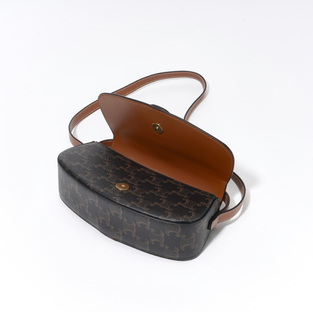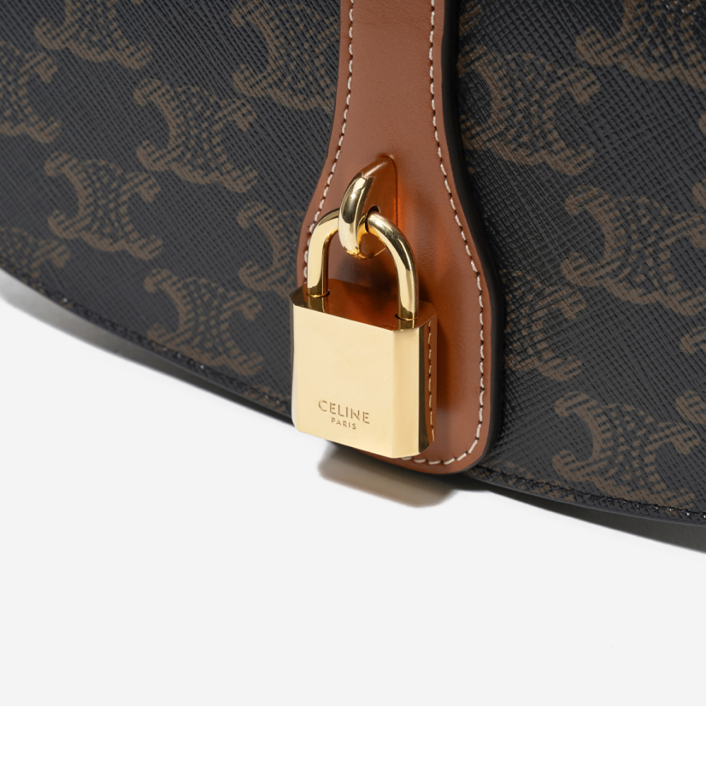 셀린느 클러치 온 스트랩 타부 트리옹프 캔버스 카프스킨 탄