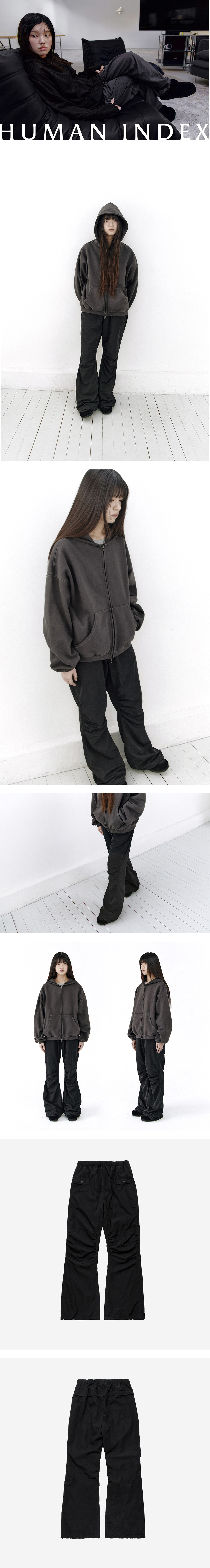 폴리테루 휴먼인덱스 우먼 인덱스 셔링 플레어드 팬츠 블랙