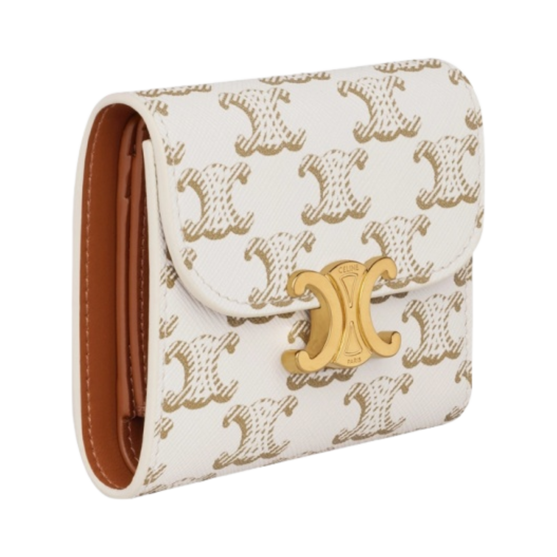 Celine Small Wallet Triomphe in Triomphe Canvas White Tan