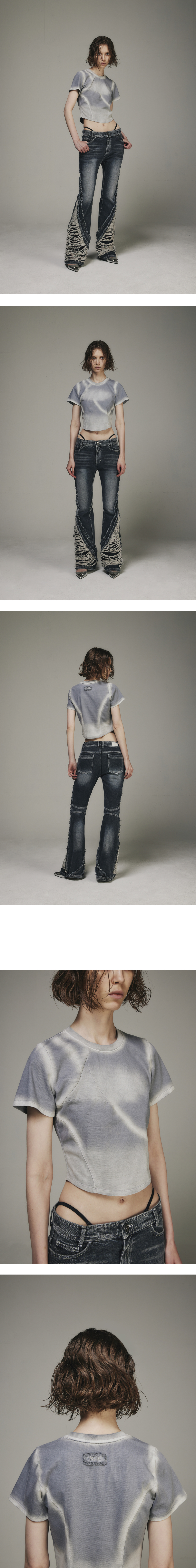 비엘알 블리치드 트라이앵글 그라데이션 워싱 티셔츠 그레이