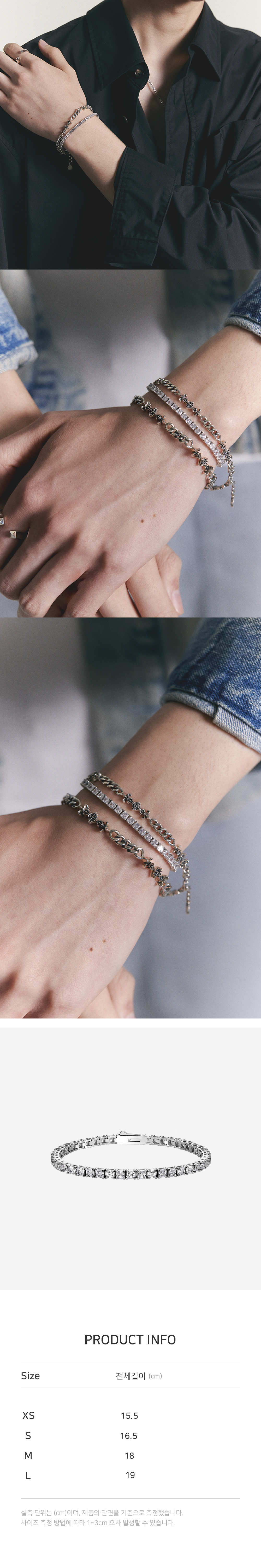 * 테니스 브레슬릿의 옵션기준은 팔찌의 '전체 길이' 입니다.