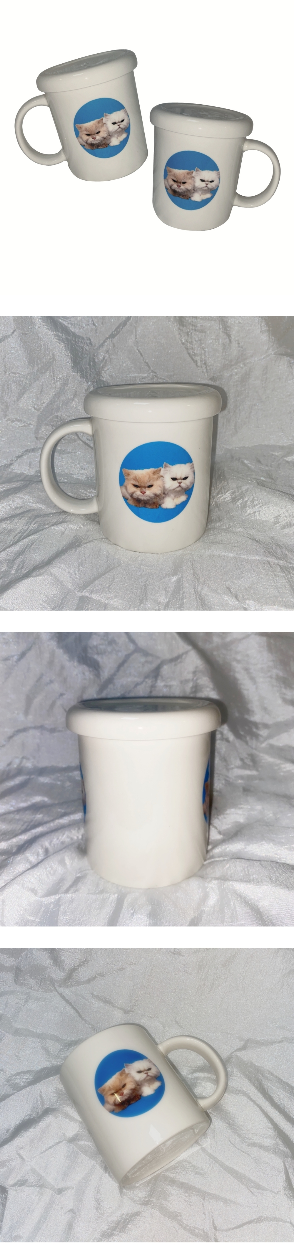 귀여운 고양이 커플을 담은 머그컵을 소개합니다. 단조로운 테이블 위에 귀여운 포인트를 줄 수 있는 제품입니다. 가족,친구,연인과 가볍게 주고 받을 수 있는 선물로도 추천해드립니다. 머그컵과 함께 제공되는 세라믹 뚜껑이 있어 위생이 중요해진 현시점에 실용적으로 사용하기 좋은 머그컵이라고 생각합니다. ★주문제작 상품으로 3일~7일 소요됩니다. ★전자레인지, 오븐, 철수세미의 사용을 삼가해주세요. ★세로10cm 가로8.5cm (320ml) ★세라믹 제품