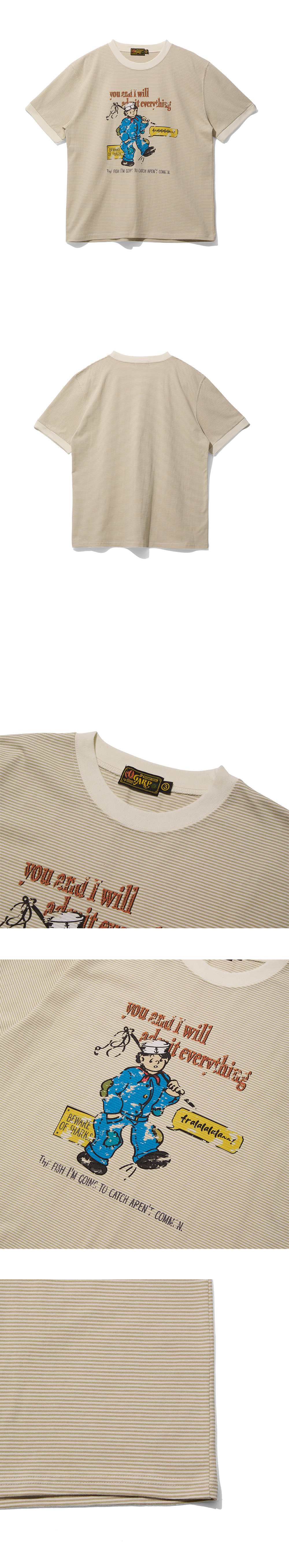 오가프 마린 보이 프린팅 스트라이프 티 베이지