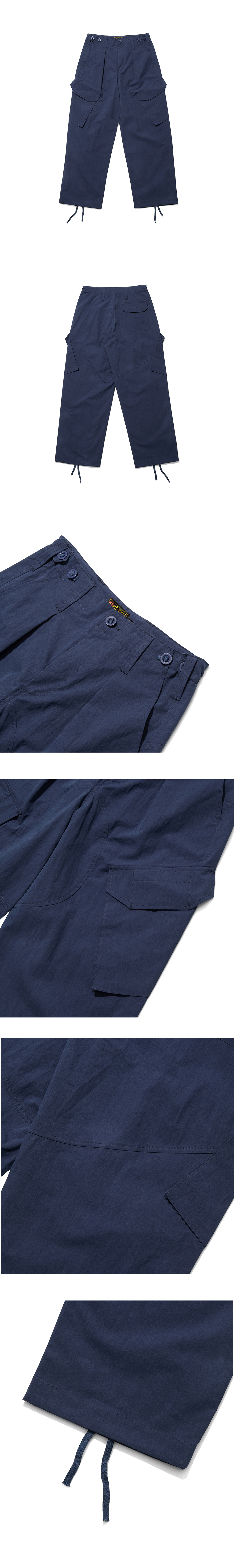 코튼 혼방의 나일론 소재로 제작된 컴뱃 카고 팬츠입니다. 테이퍼드 실루엣으로 밑단으로 갈수록 루즈하게 좁아지며 양측 허벅지에 포켓과 가랑이 부분에 절개를 주어 좀 더 편한 착용감을 주는 제품입니다.