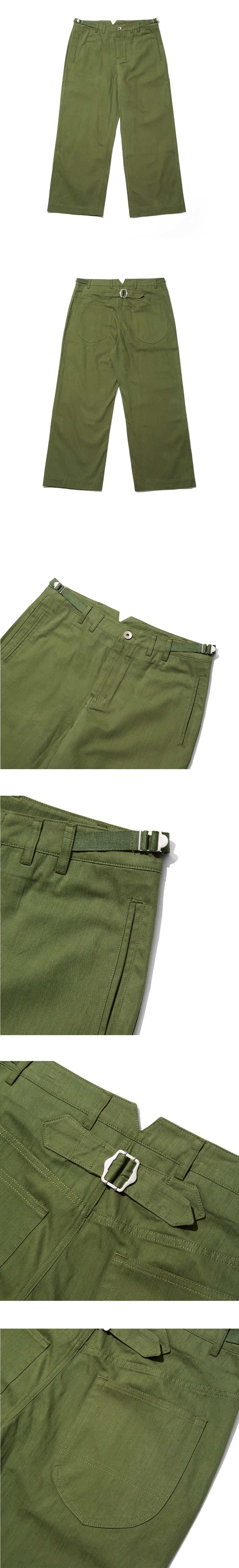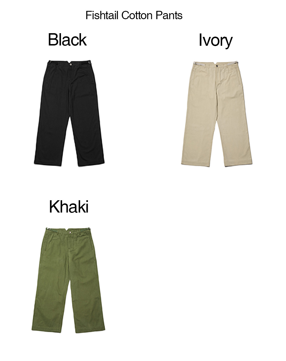 과거 프랑스 노동자들의 워크웨어 팬츠를 베이스로 적당한 두께감과 슬라브(slub) 텍스처 코튼 원단을 용하였고 허리 뒷부분 V자 트임과 신치백 디테일을 통해 빈티지한 무드를 현대적으로 재해석 한 피쉬 테일 팬츠 입니다.