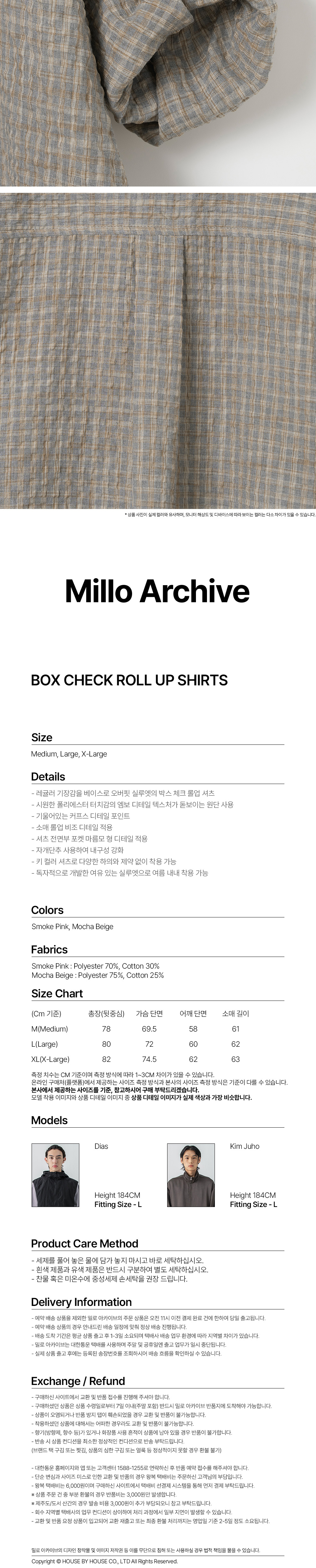 밀로 아카이브 박스 체크 롤업 셔츠 모카 베이지