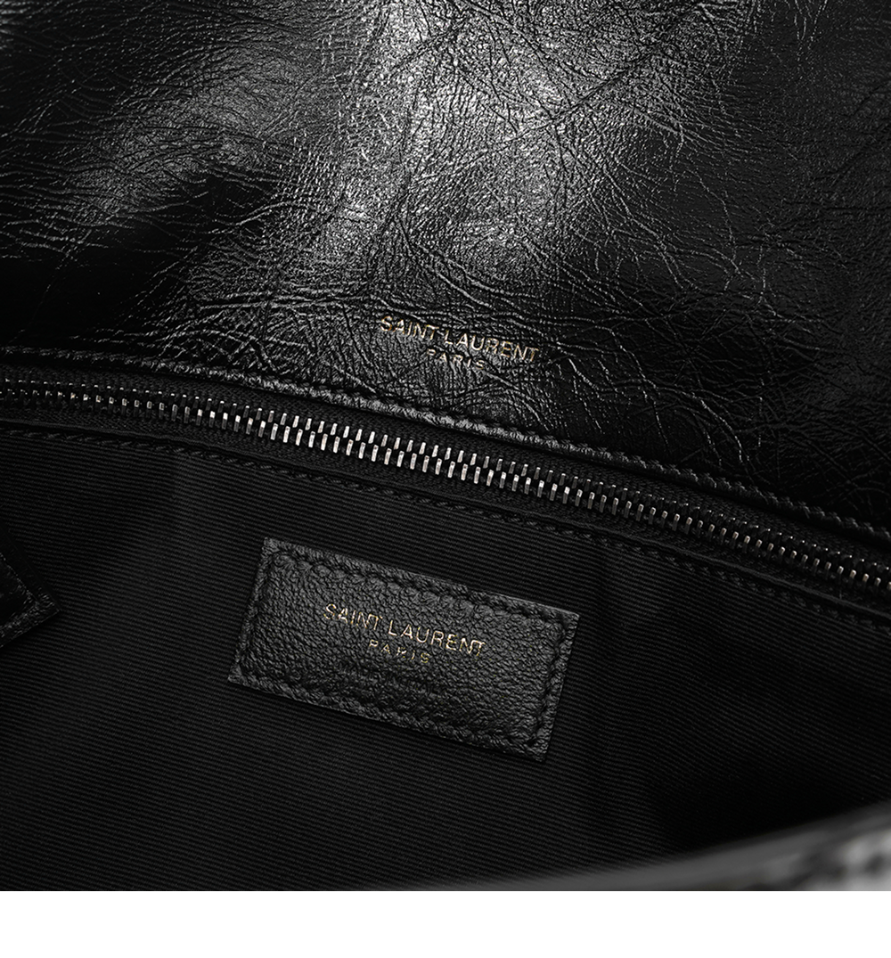 생로랑 크링클 빈티지 레더 블랙 모노그램 니키 미디움백 실버 체인 스트랩 블랙
