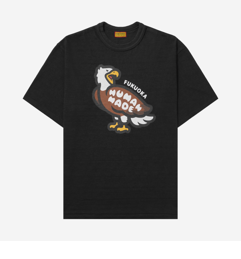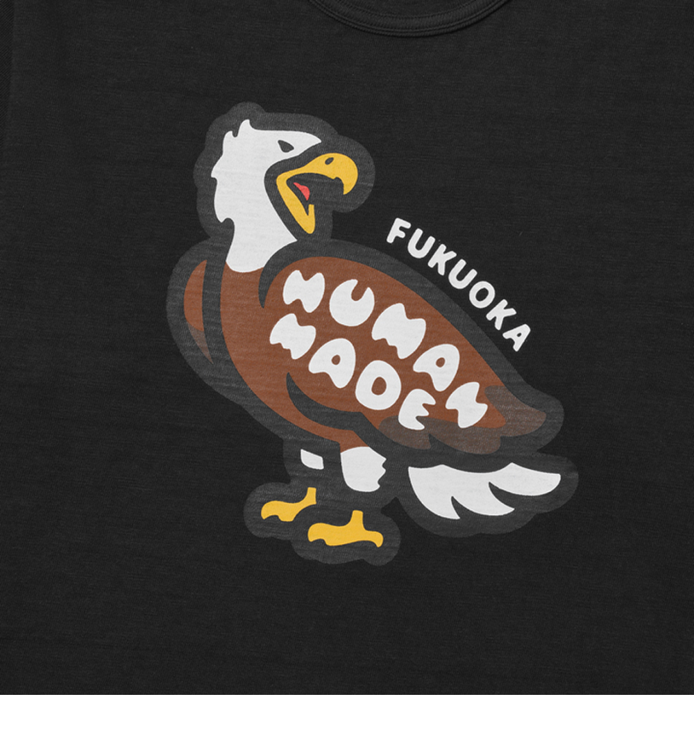 휴먼 메이드 애니멀 그래픽 티셔츠 호크 블랙 - 후쿠오카 스토어 한정