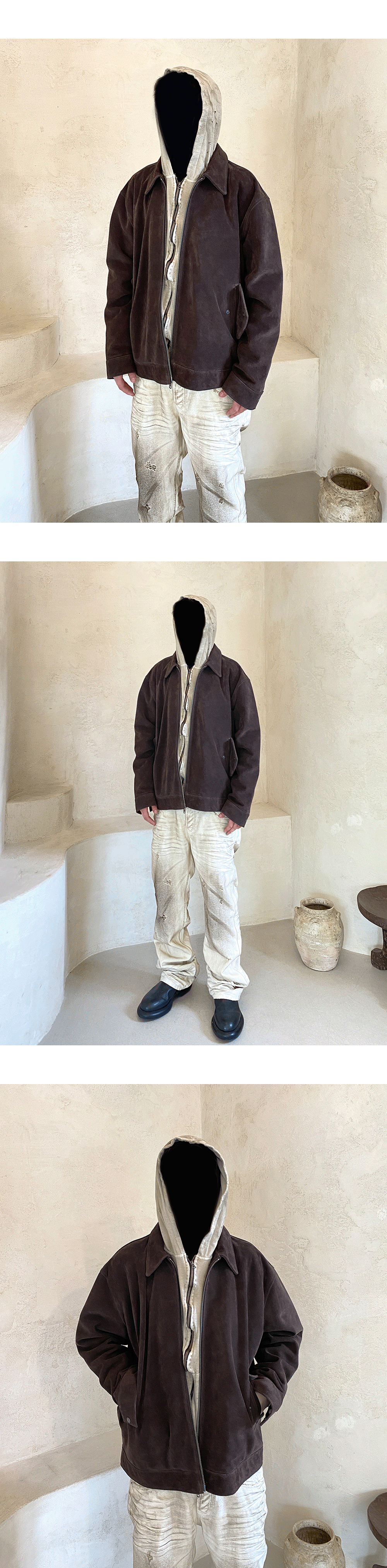 - 디테일을 뺀 스웨이드 자켓으로, 어떤 착장에도 무심한 듯 걸칠 수 있는 제품입니다. - 한국에서 소량 제작되었습니다. - 스웨이드 원단 특성 상 이염이 있을 수 있는 점 참고 부탁드립니다.