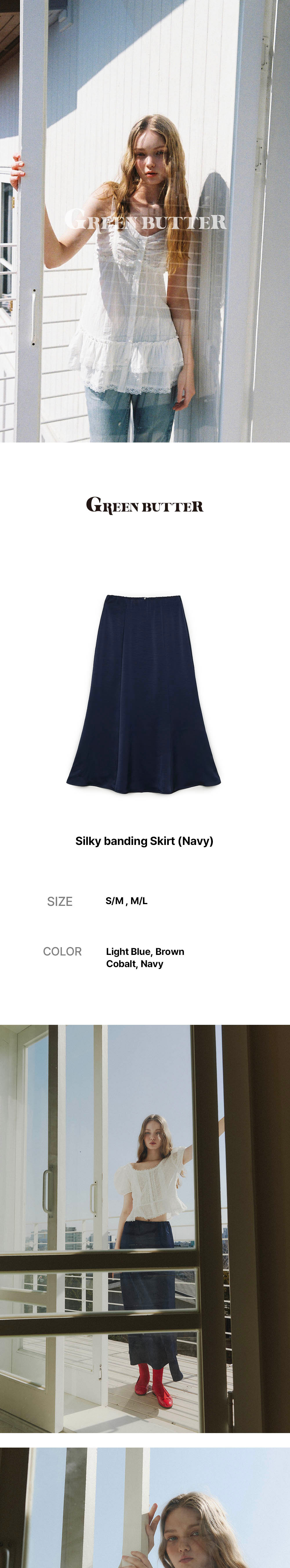 그린버터 실키 밴딩 스커트 네이비
