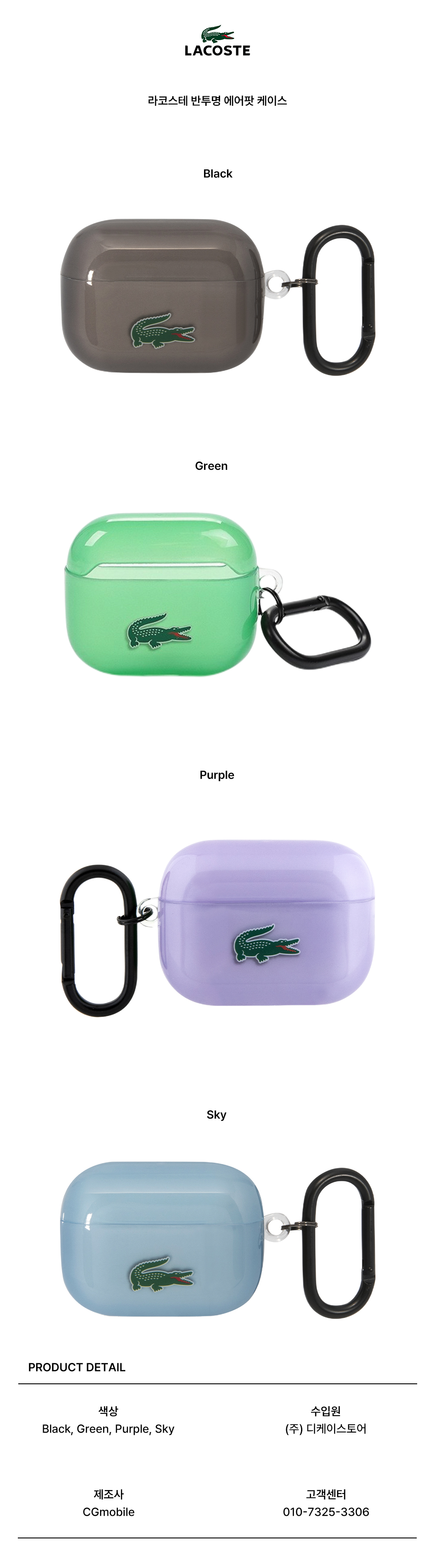 라코스테 에어팟 프로 2 반투명 케이스 블랙