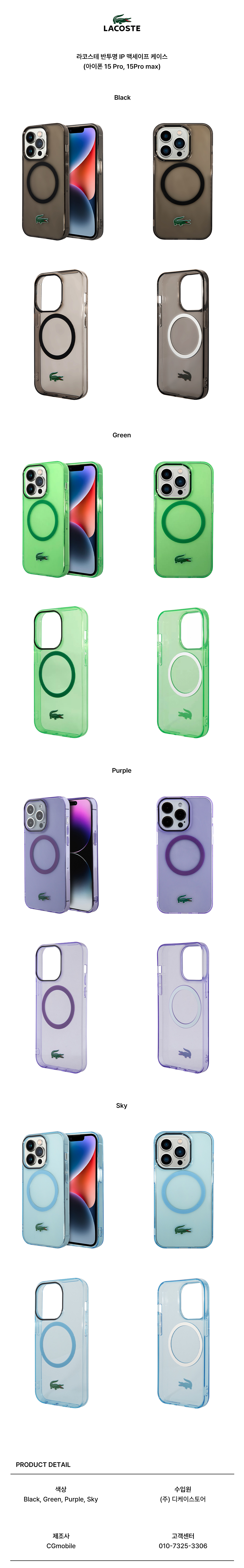 라코스테 아이폰 15 프로 맥스 반투명 케이스 그린