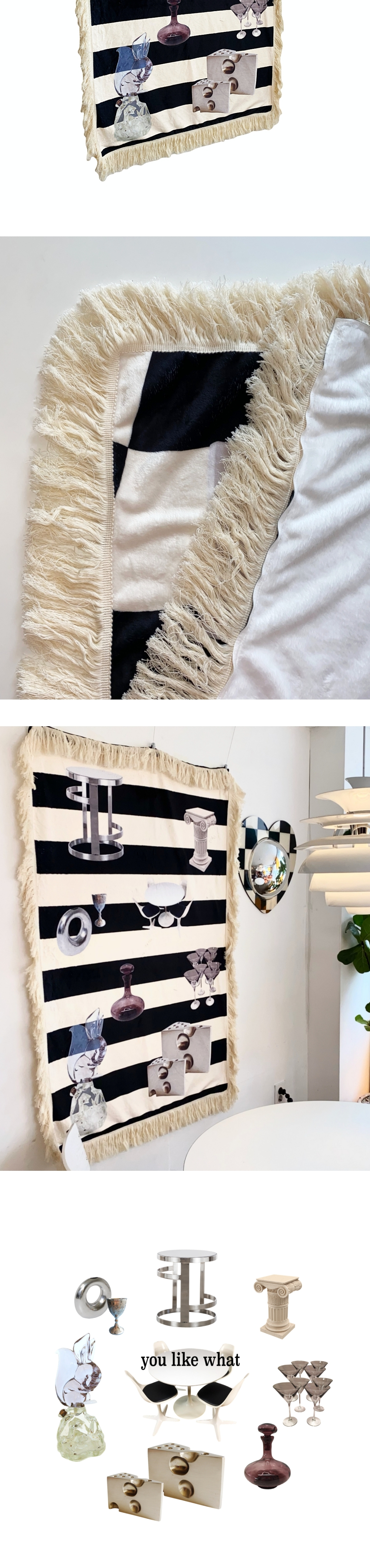 빈티지 가구와 오브제들의 이미지를 활용해 만든 블랭킷입니다. 150x100cm (테슬 제외사이즈) made in korea EF 벨보아 극세사 / 양면기모 최고급 극세사 면을 이용해 제작 되었으며, 밍크털과 같은 부드러움을 느끼실 수 있습니다.