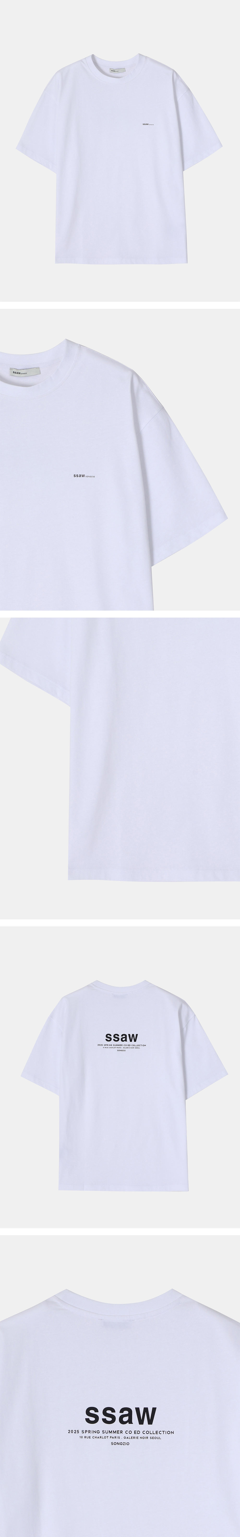 - SSAW TITLE T SHIRT - 표면감이 느껴지는 내추럴 코튼 패브릭 - 전면 가슴 실리콘 프린트 기법의 'SSAW SONGZIO' LOGO - 후면 실리콘 프린트 기법의 SSAW TITLE 아트워크 - 사이드 슬릿 디테일 - 오버사이즈 실루엣 - MADE IN CHINA