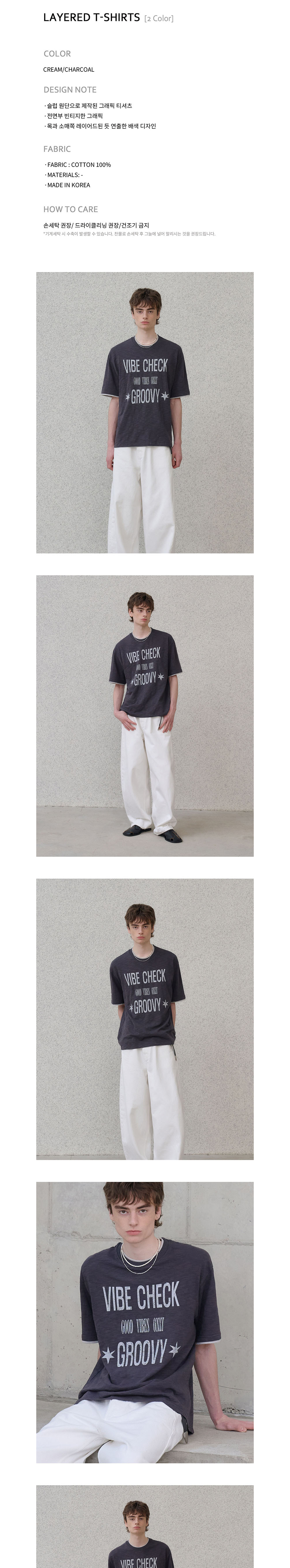 노운 레이어드 티셔츠 차콜