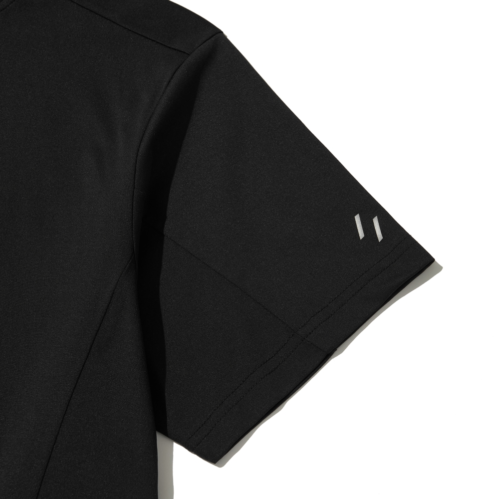 [INSTRUCTION] 일상에서 가볍게 입을 수 있는 디자인의 흡습, 속건, 스트레치 기능성 티셔츠입니다. 쿨링 원단으로 제작돼 시원한 착용감 제공합니다. 인체의 움직임을 고려한 몸판 옆라인이 편안한 움직임을 제공합니다. 야간산행이나 우중시 안전한 활동을 돕기 위해 로고에 재귀반사(빛반사) 필름을 사용했습니다. 쿨링 폴리 기능성 원단 재귀반사(빛반사) 필름 (로고) 활동성을 높인 입체 패턴