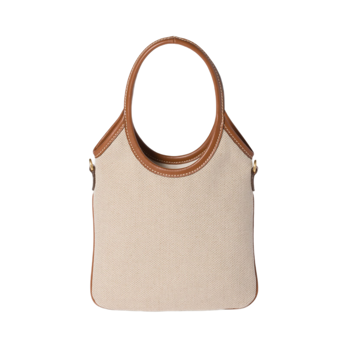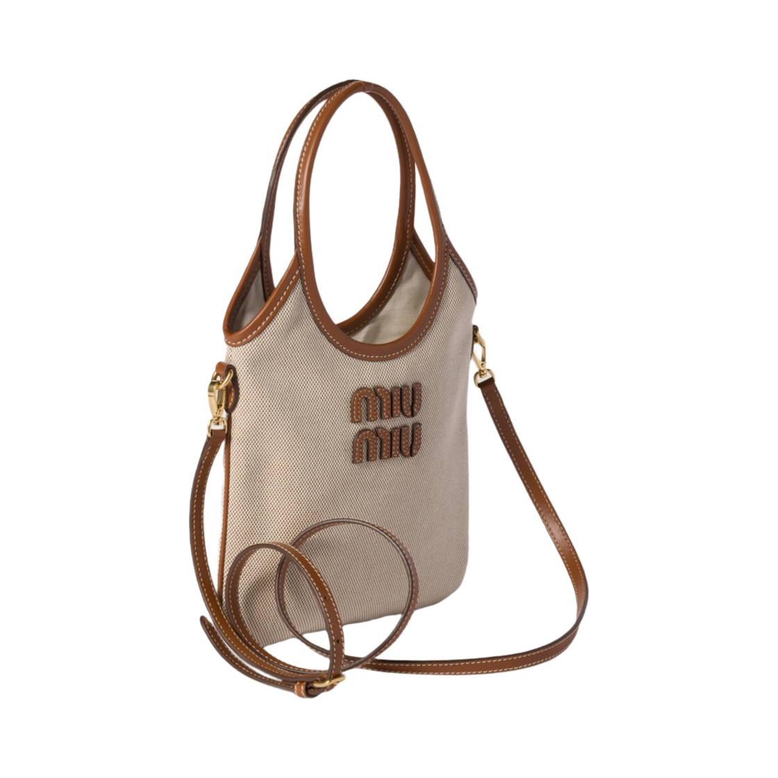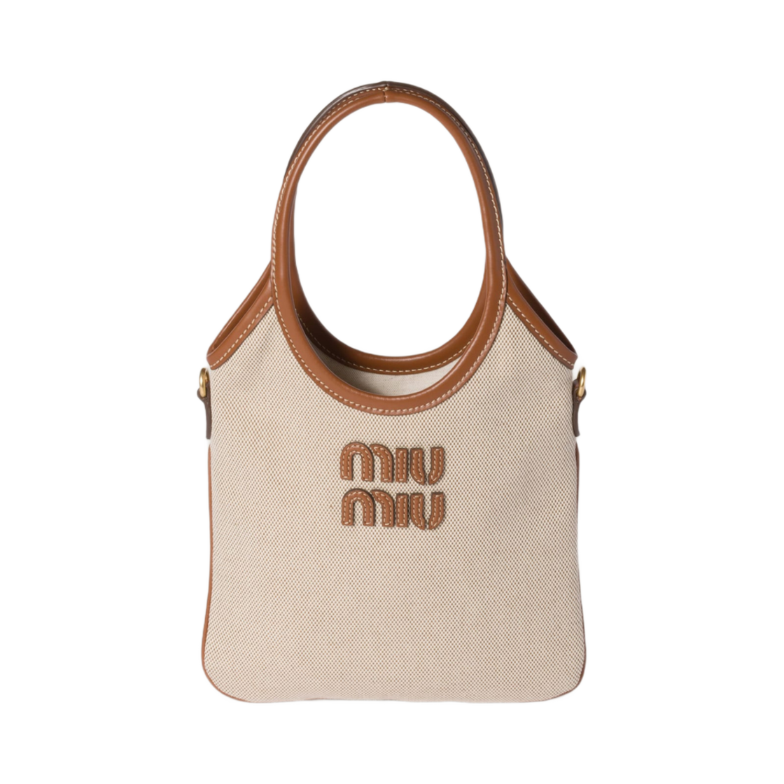 Miu Miu Canvas and Leather Ivy Bag Beige Brandy